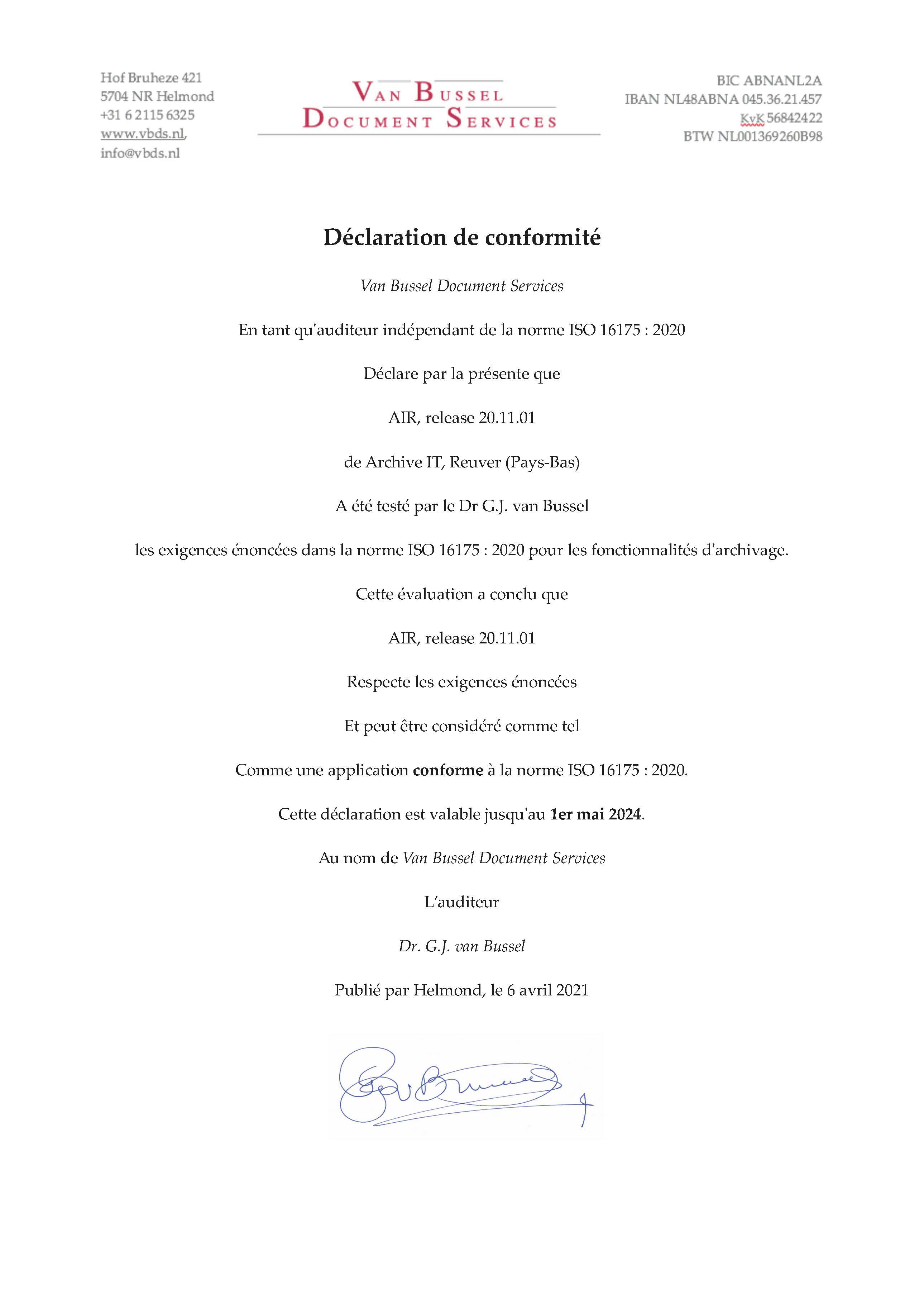 Tout est soutenu par un système informatique bien organisé et sécurisé. Cela signifie que toutes les actions sur les documents d'archives sont consignées. Les droits et les autorisations permettent de garantir la sécurité des documents. En outre, notre informatique offre suffisamment d'espace pour créer, consulter et suivre les flux d'informations tant logistiques que numériques. Nous vous montrerons volontiers comment cela fonctionne dans la pratique. Demandez ici une démo gratuite !